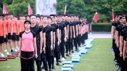 队列的同学赢下好彩头,健美操的参赛者也毫不落后。伴随轻快乐声跳跃进场,同学们手持踏板,穿插交错来到场上。健美操对体力要求较高,升高的温度和体力的消耗无疑是个巨大的考验。然而在动感的音乐中,同学们动作整齐标准,赢得在场观众重重喝彩。