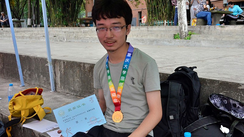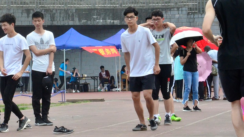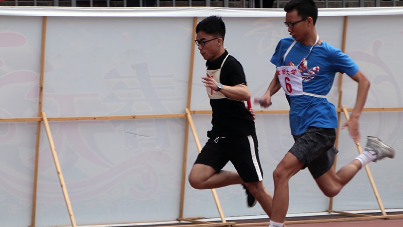 一天的比赛,从八点半的本科男子200米的发令枪声中开始。孙德晟和殷萧阳两位同学自六点多便从虎溪校区赶到A区,虽舟车劳顿,但却不露丝毫疲态,在赛场上奋力奔跑,清晨的风也因此热了起来。