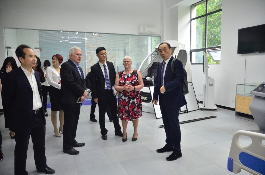最后,英方嘉宾参观了大数据与软件学院创新中心的人脸识别、智慧洗衣机、虚拟现实体感平台、康复医疗物联网设备、智慧鱼缸等科创项目,对学院的创新成果和人才培养模式表示了充分肯定和赞赏,并希望能与我校在搭建合作平台,人才培养以及科研创新等方面建立长期的合作关系,为提升重庆大学国际化办学水平、推动重庆市医疗信息化进程共同努力。