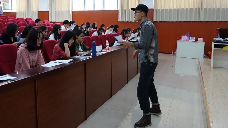 25日晚,合唱团开始强调对四个声部的分别练习,应老师要求,四个音部分批练习,被轮到的声部需于前排就坐,老师会点对点地进行教学演练。剩下的声部也不会闲着,他们在后排仍然戴着耳机练习节奏与发声。