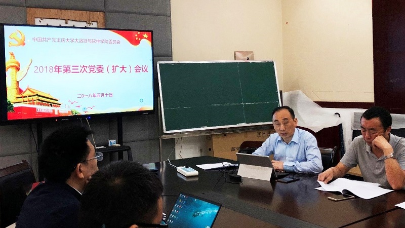 5月10日上午,大数据与软件学院党委2018年第三次(扩大)会议在虎溪校区学院楼109会议室顺利召开。会议主要围绕近期学院党委工作的开展情况、市委教育工委第一季度督查反馈情况,以及下一步学院推进党建工作重点任务进行。会议由学院党委委员、院长熊庆宇主持,学院全体党委委员、各教工学生支部书记及委员参加了会议。