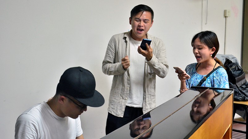 12号晚上八点半左右,来自重庆师范大学的钢伴老师不辞辛苦到场,亲临现场了解合唱的表现形式、快慢节奏、高低情绪,并根据合唱团的表演修改乐谱。向钢伴老师展示表演的过程中,参加的合唱的同学也严格要求自己,尽力展示出最好的歌声。