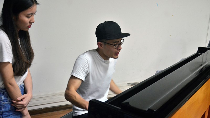 5月12日,大数据与软件学院团委学生会文体部特意申请了综合楼的阶梯教室,搬来了钢琴。合唱团成员全员集合,在老师的指挥下对合唱的表演形式做最后的调整。虽然已经有了完整的方案,并联系多次,但出于对完美的追求,合唱团仍然忍痛舍弃了部分排练效果较差的和声,力求做到精益求精,充分展示《在太行山上》的悲壮和气势。