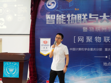 其后,合作企业亲禾投资董事长邓华发表了讲话。邓华董事长表示,双方的合作,一方面公司为学院引入“物联洗衣、虚拟现实”等项目;另一方面学院给予物联网产品迭代,后期大数据分析等研究支持。该实验室的建立,充分契合了加快推动国家大数据战略的思想,符合积极响应重庆市以大数据智能化为引领的创新驱动发展观念,也全方位地对接和服务重庆“三大攻坚战”和“八项行动计划”,具有十分重要且深远的意义。