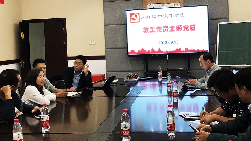 9月13日下午,大数据与软件学院教工党支部在学院楼109会议室开展“践行新时代党的组织路线,为“双一流”建设提供组织保障”主题党日活动,重点学习了习近平总书记在全国组织工作会议上的重要讲话精神。会议由学院党委书记文俊浩主持,全体教工党员参加了此次会议。