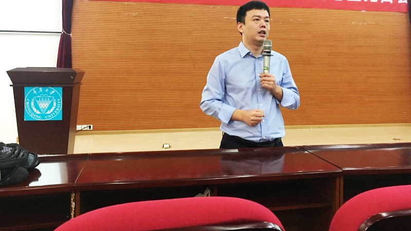 随后杨正益老师对相关的组织管理办法进行了讲解,主要从申请选题、过程管理和答辩验收三个步骤一一介绍。在提问环节,有同学问到软件生产实习和毕业实习的区别为何,吴映波老师对此问题进行了解答,他说,软件生产实习除了实习以外最后还要通过答辩的形式来验收打分,而毕业实习则没有最后答辩的这一环节。