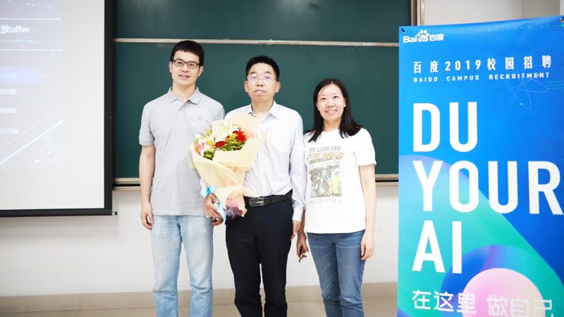 值得一提的是,9月12日晚文教授在A区进行宣讲后,百度首席HR黄际州还到达现场,对恩师文书记致以感谢,并送上一束鲜花。