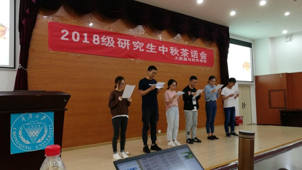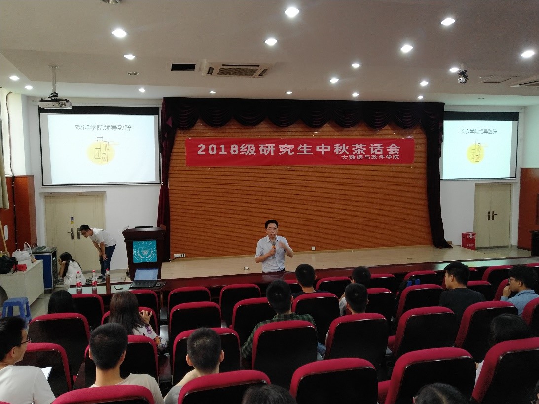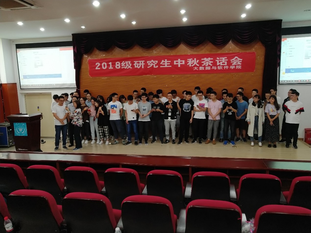 2018年9月21日,重庆大学大数据与软件学院研究生分团委在学院报告厅成功举行了中秋茶话会,参与本次活动的有大数据与软件学院党委书记文俊浩,研究生辅导员李军老师以及2018级研究生同学们。