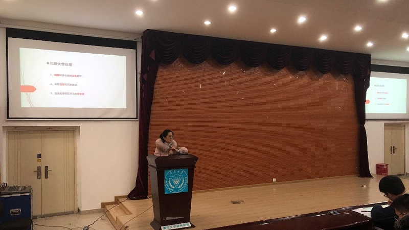 大会伊始,张希谊老师就毕业学分要求给同学们做出讲解。包括:一、毕业要求最低学分168分;二、专业选修、专业必修、非限制性选修等有单项最低学分要求;三、核对完成后在下学期开学第一周统一反馈处理;四、保研同学毕业设计需要在“良好”以上才能推免。