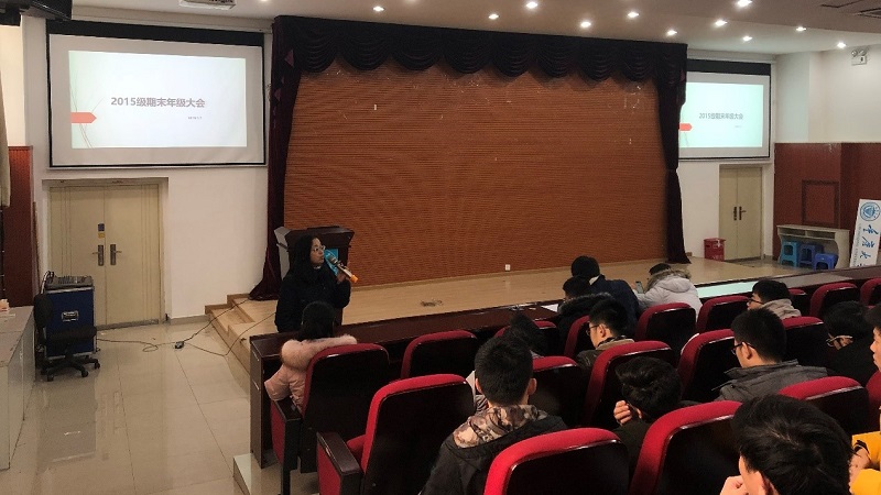 2019年1月7日早上11点,重庆大学大数据与软件学院本科2015级在学院楼报告厅顺利召开年级大会。此次年级大会围绕“毕业学分要求、年终总结、寒假放假安排”三大主题展开,2015级辅导员刘小雪老师与教务张希谊老师以及2015级全体同学参与会议。
