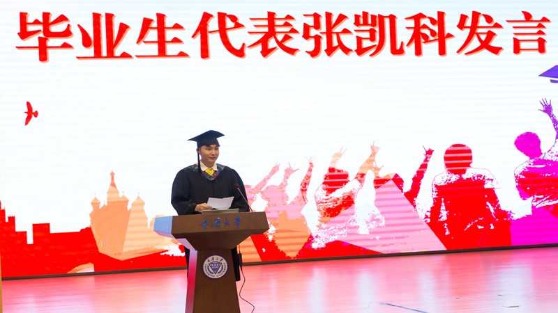 本科毕业生代表、保送中国科学院大学张凯科同学在发言中代表全体毕业生向大学期间所有指导、关心和帮助过同学们的老师与家长道了一声感谢,回忆了大学四年的点点滴滴,他坚信软件人应有坚韧不拔之志,终将在更高处相见。