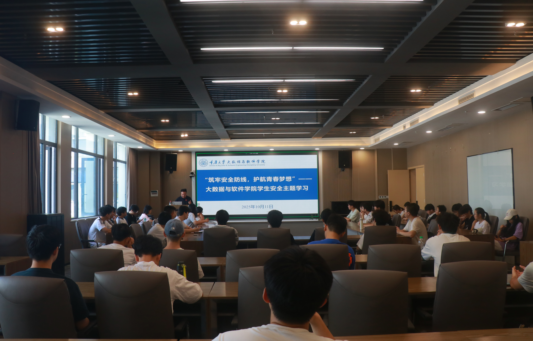 2025年10月11日,大数据与软件学院于信息技术科研楼B725会议室开展了以“筑牢安全防线,护航青春梦想”为主题的学习活动。此次活动特邀重庆大学保卫处的刘郅祎作为主讲嘉宾,学院各年级学生通过线上与线下相结合的形式参与学习。