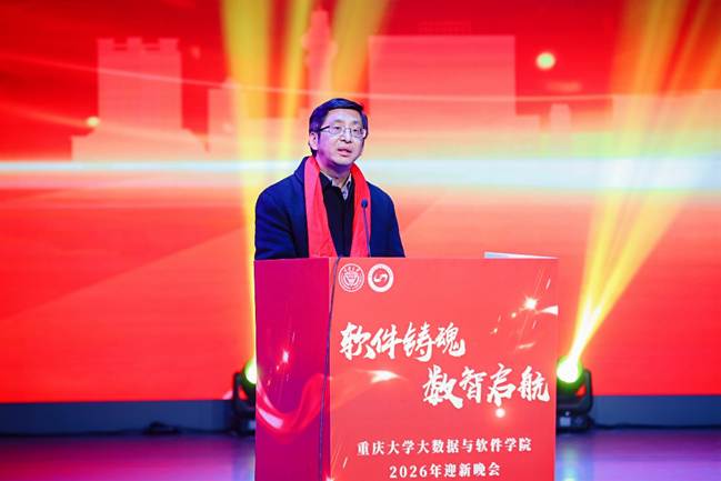 缙云弦歌启新岁,嘉陵潮涌绘宏图。2025年12月19日19时,重庆大学大数据与软件学院“软件铸魂,数智启航”2026年迎新晚会在虎溪校园小剧场举办。学院全体在家院领导、校友代表、学院师生和其他各学院学生代表等400余人齐聚一堂,喜迎新年,共话未来。